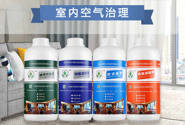 異味清除劑(生物酶)原理:利純異味清除劑產(chǎn)品原液中含有特種微生物的孢子,在有氧環(huán)境、溫度、濕適合的條件下,原液噴涂到基材表面后,其中的孢子會(huì)轉(zhuǎn)變?yōu)樘胤N微生物,微生物有強(qiáng)大的繁殖能力,通過自身繁殖產(chǎn)生生物酶,并能分泌一定的活性酶,在微生物和酶的雙重作用下,能把基材中能揮發(fā)出來的甲醛、苯、氨、TVOC等有害氣 體物質(zhì)分解為無毒無害的二氧化碳(CO2 )、水(H2 O)、二氧化氮(N02 )等 物質(zhì),能從污染源頭祛除醛類、苯類等有機(jī)污染物及異味,達(dá)到凈化空氣的目的。